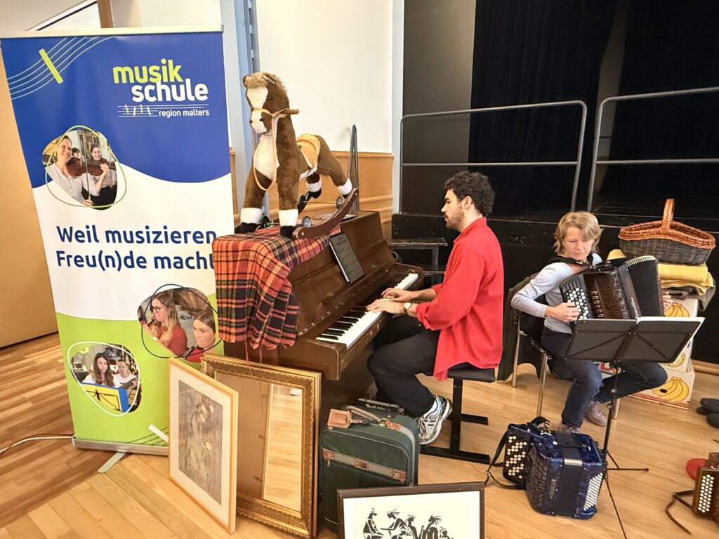 Im Musighuus fanden Schulklassenaufführungen der Musiklehrpersonen statt. Vicky Papailiou spielte eine grossartige Rolle als Hauswartin und begeisterte mit einer interaktiven Geschichte voller Ton, Bild und Mitmachmomenten. Die Kinder waren mit viel Freude dabei und sichtlich begeistert. Gleichzeitig wurde die beeindruckende Vielfalt der Musikschule lebendig und mitreissend präsentiert.